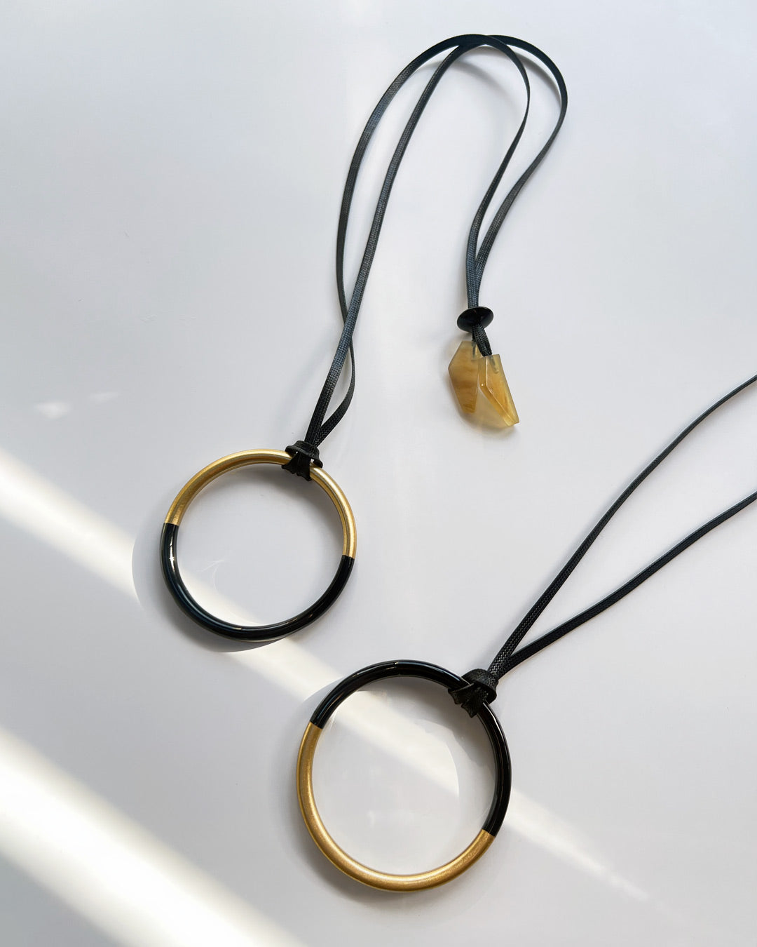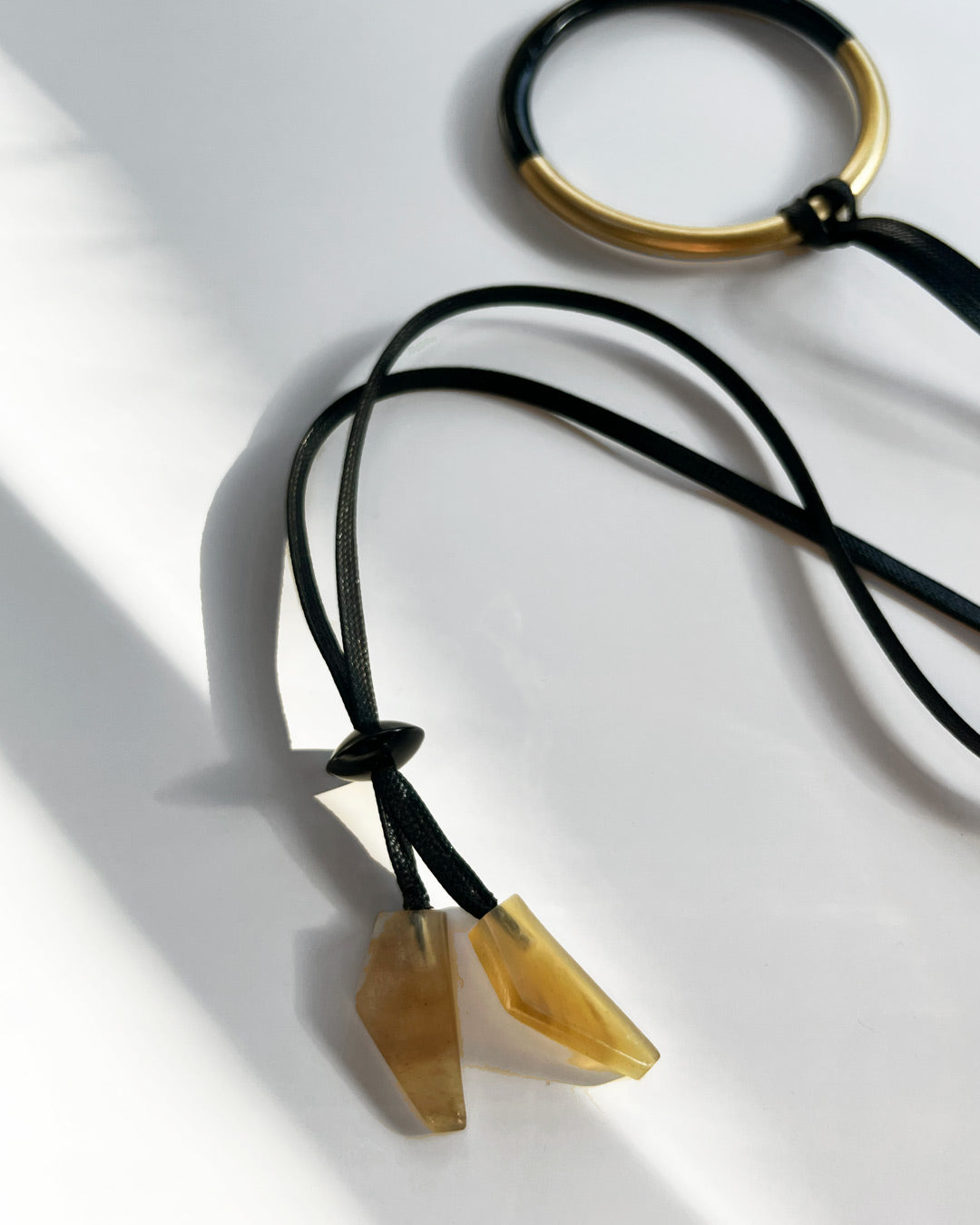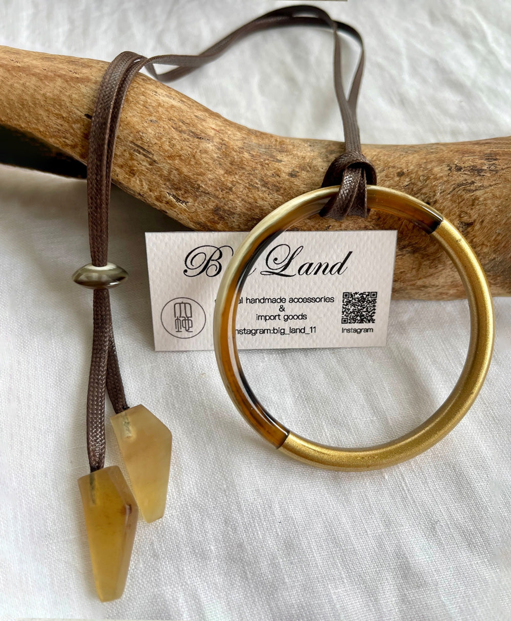 天然の水牛にゴールドの漆で華やかさをプラスしたネックレス。
