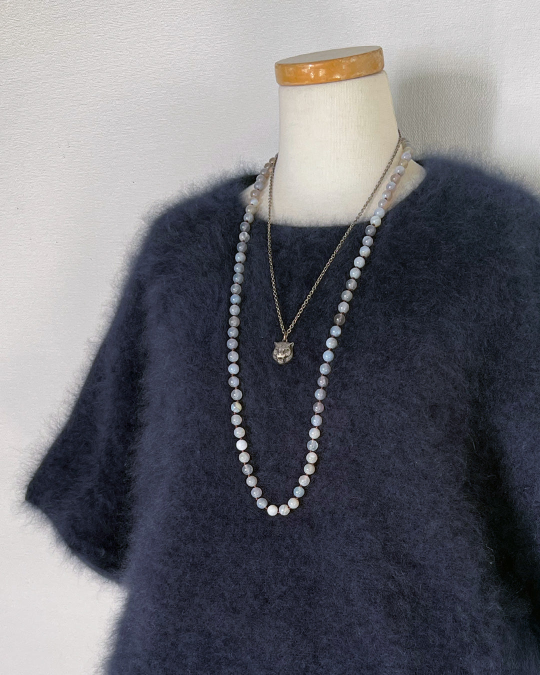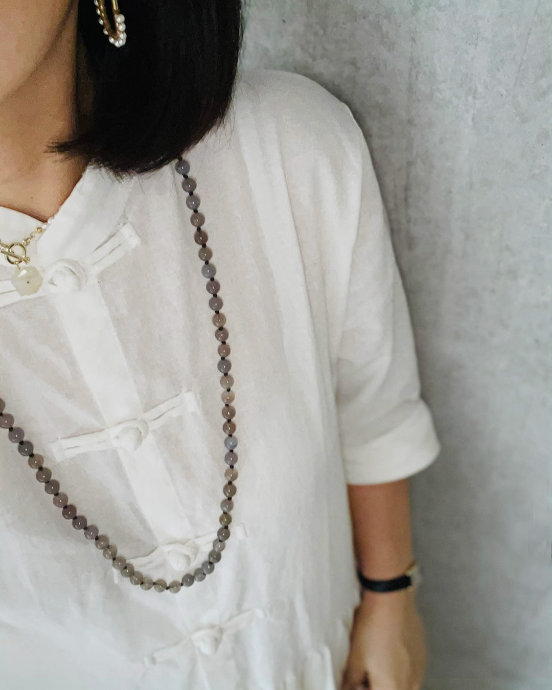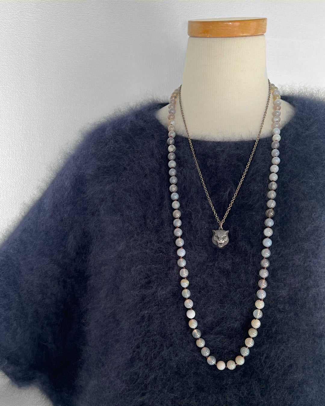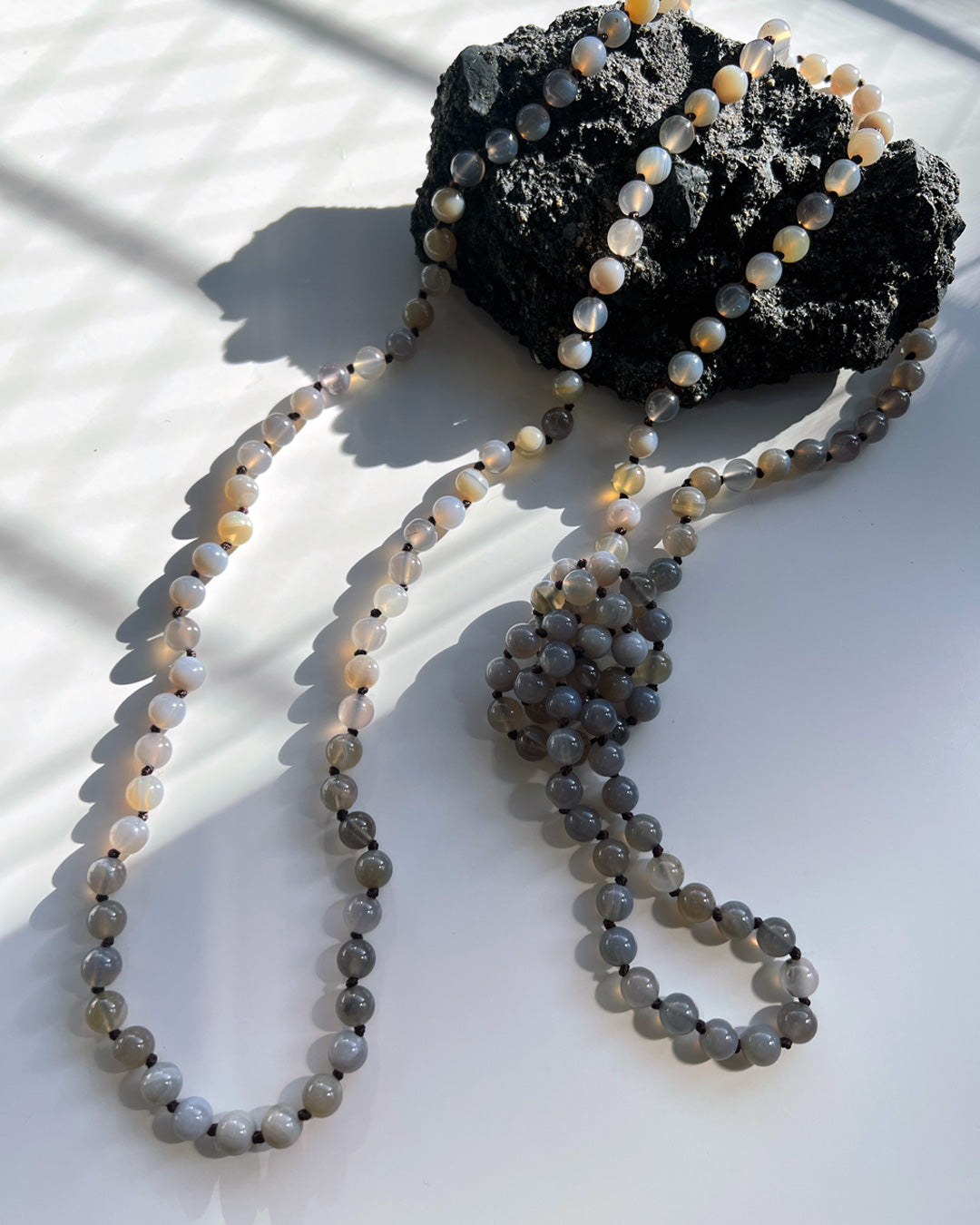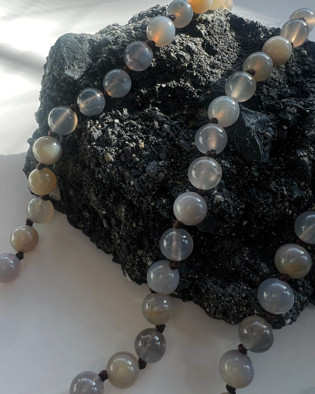 オールノットで丁寧に仕立てたアゲートのロングネックレス。