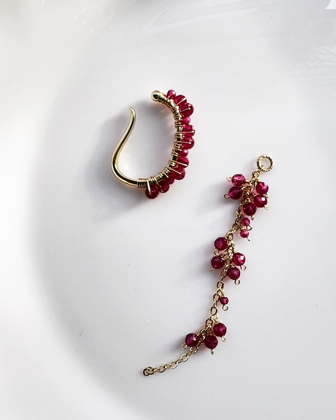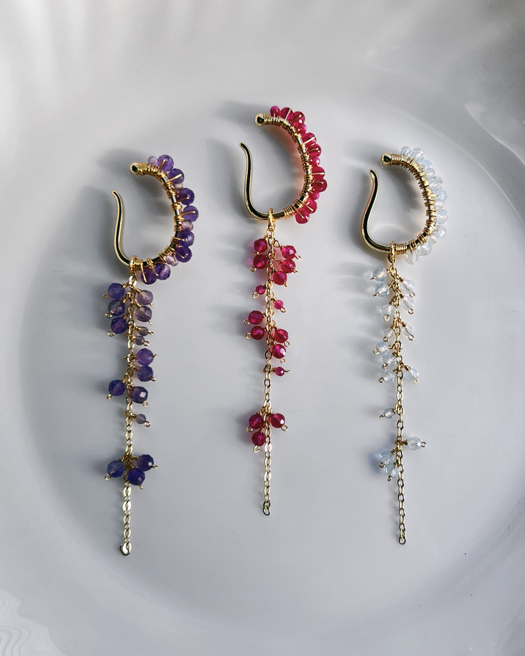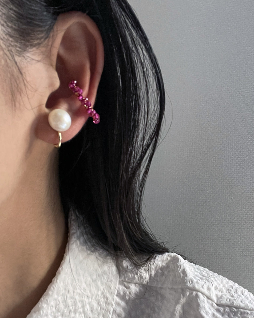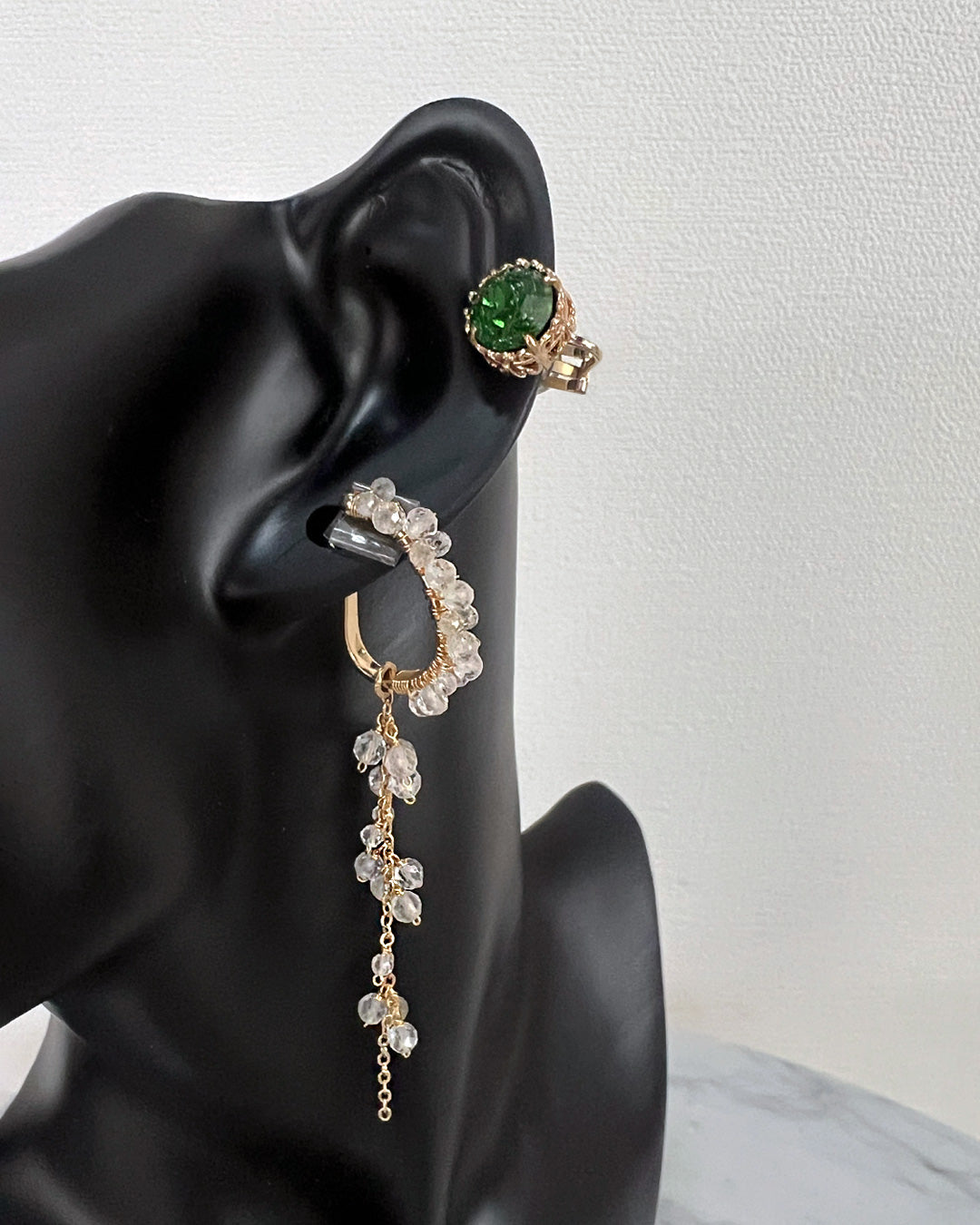 小粒の天然石を贅沢に使用した、2WAYでお使い頂けるイヤーカフ。