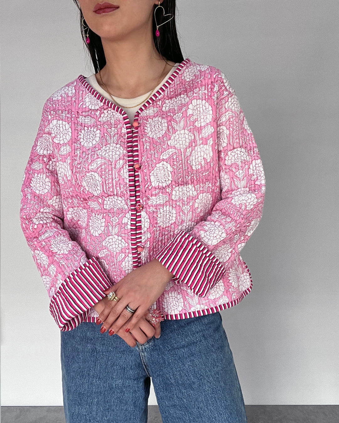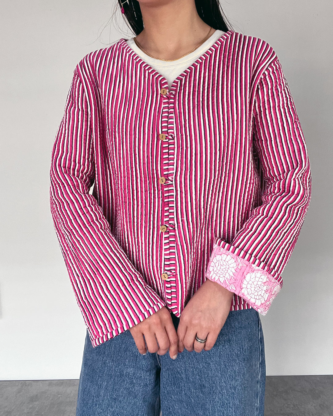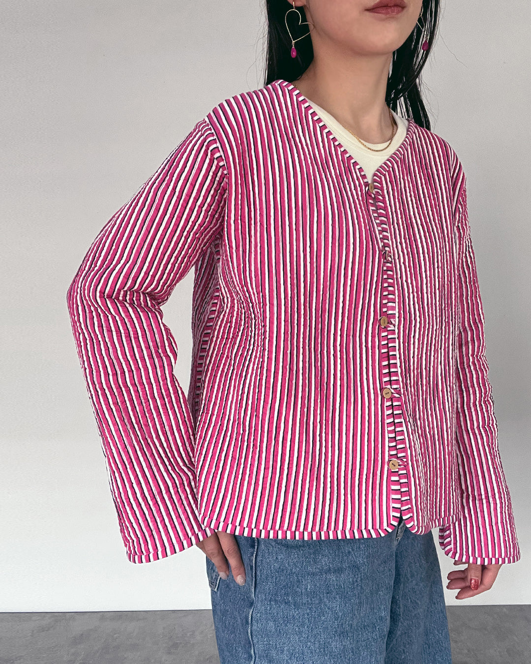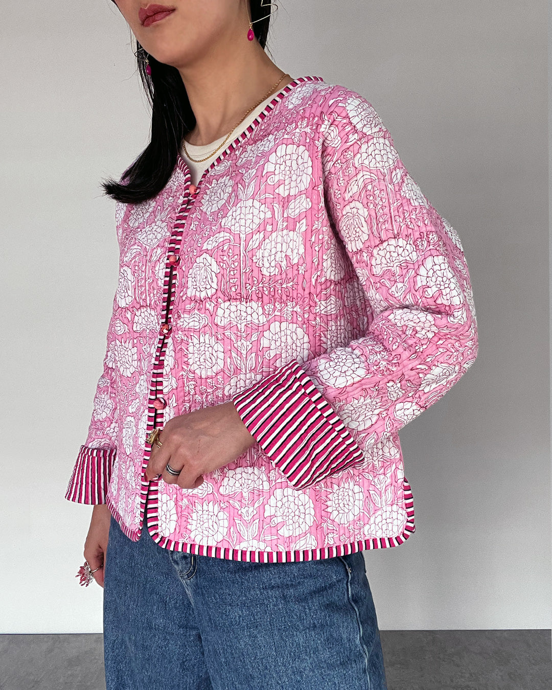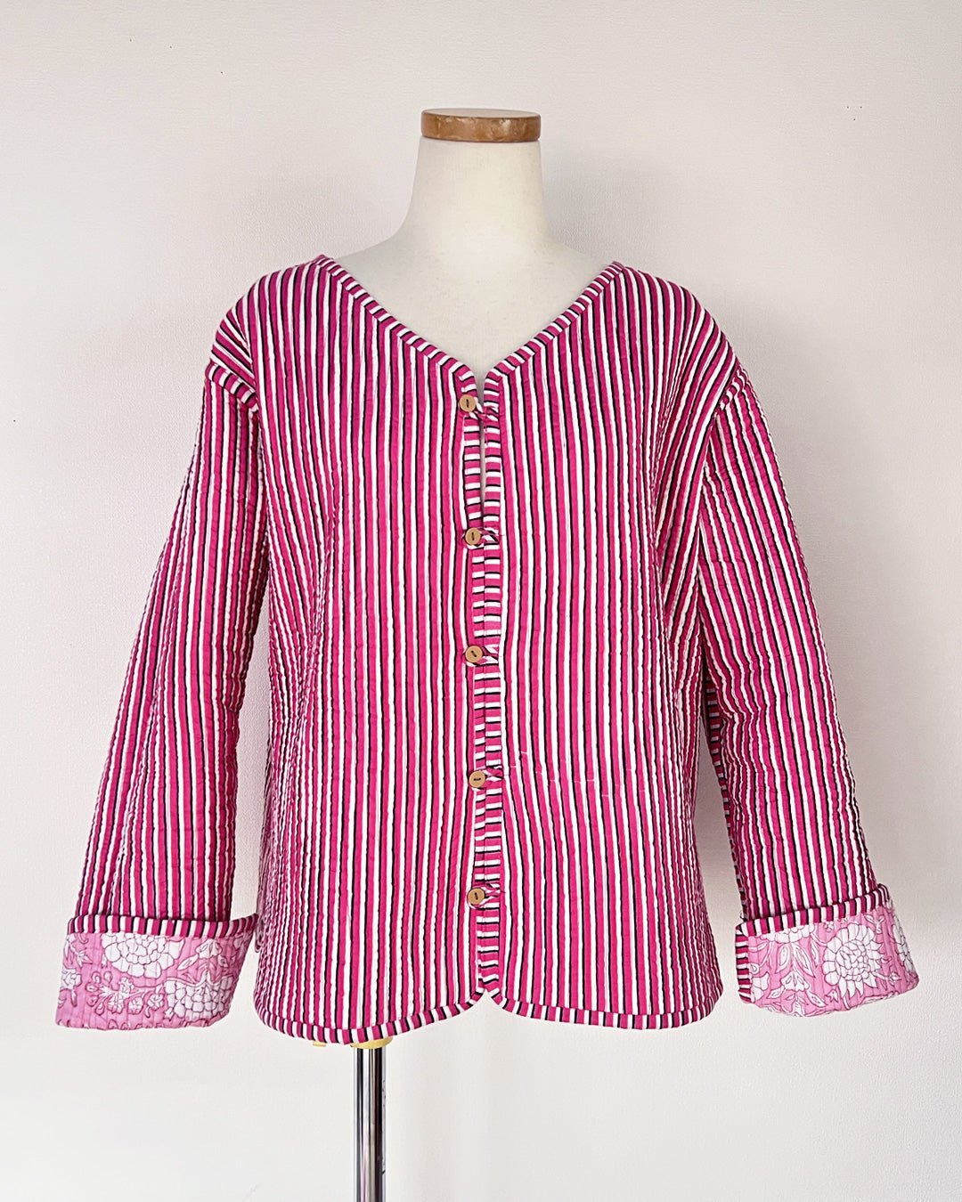 リバーシブルで着用可能なインド綿のショートジャケット。