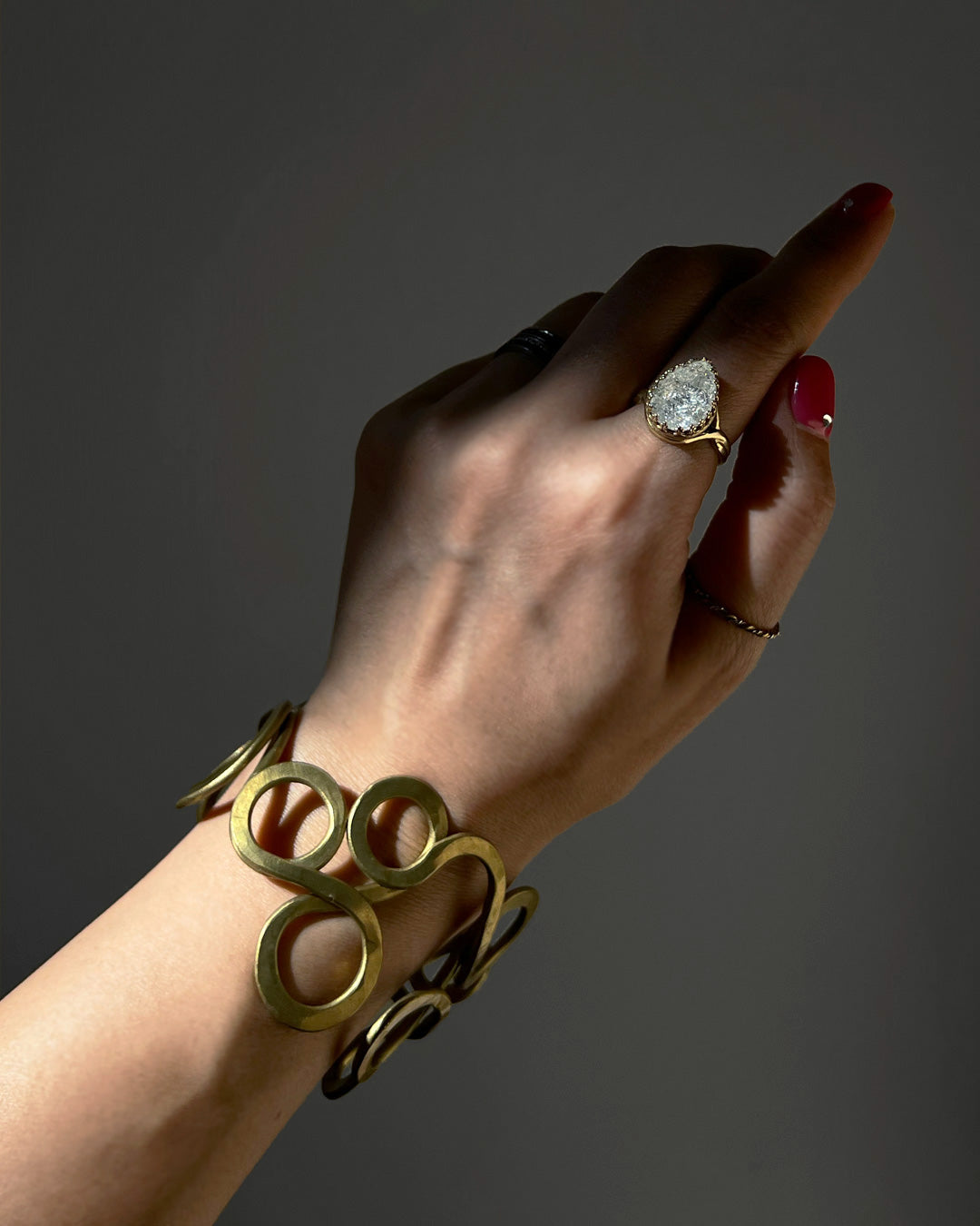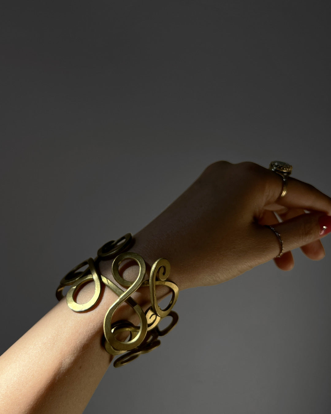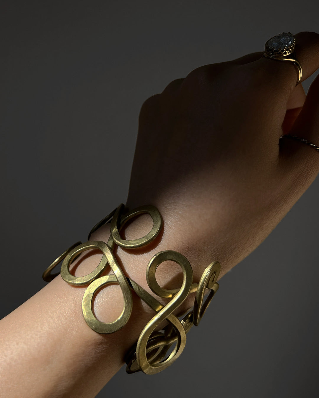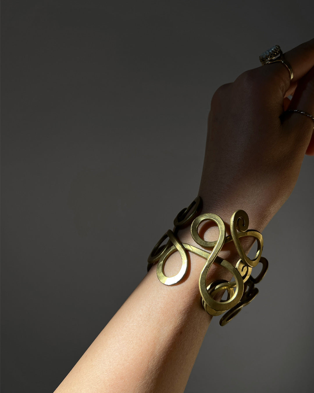 繊細に絡み合う曲線が印象的な、真鍮製のバングル。